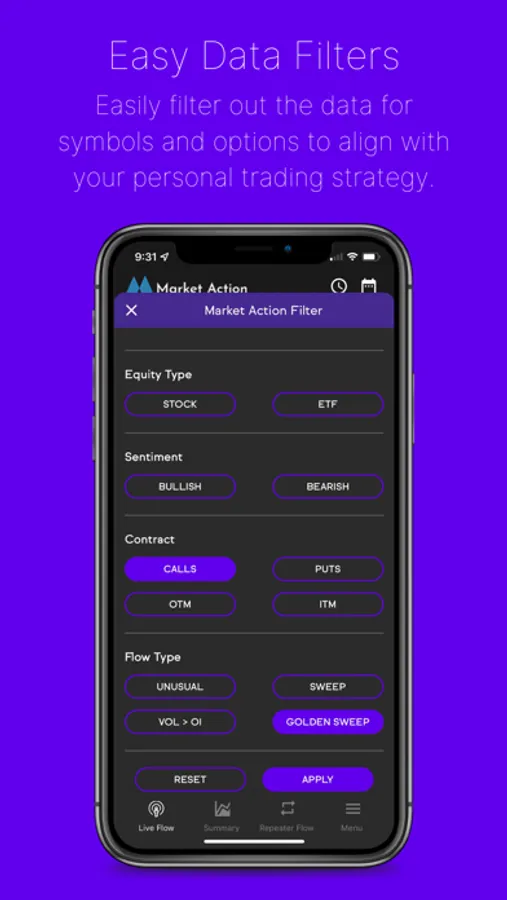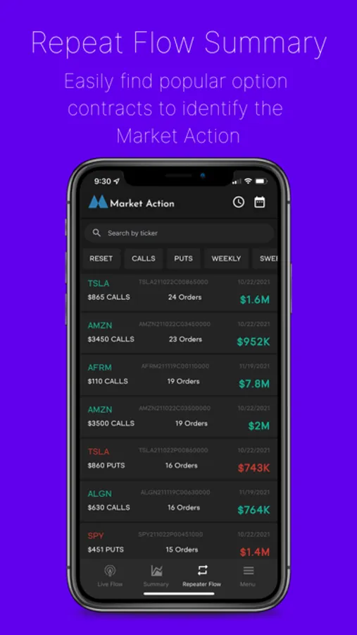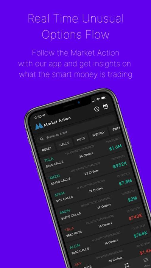 Get fast Market Action data on what symbols and tickers the “smart money” is trading. The Market Action app provides a web and mobile app platform to uncover unusual options trades in near real time data for retail options traders.