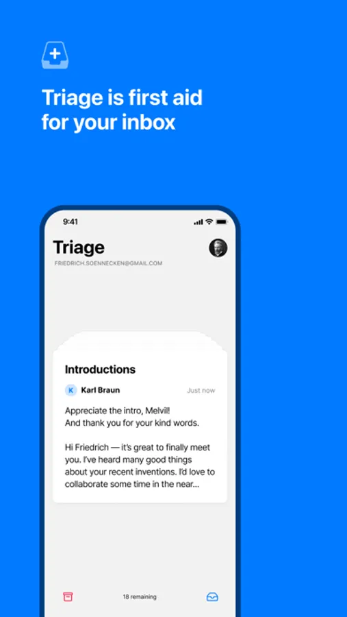 Triage 2 is first aid for people who struggle to stay on top of their inbox. It doesn’t try to replace traditional email software, but lets you use your downtime to quickly remove the noise and stress.