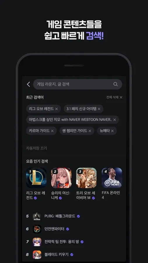 > 출시 예정 게임과 최신 뉴스까지, 게임 트렌드를 알 수 있어요.