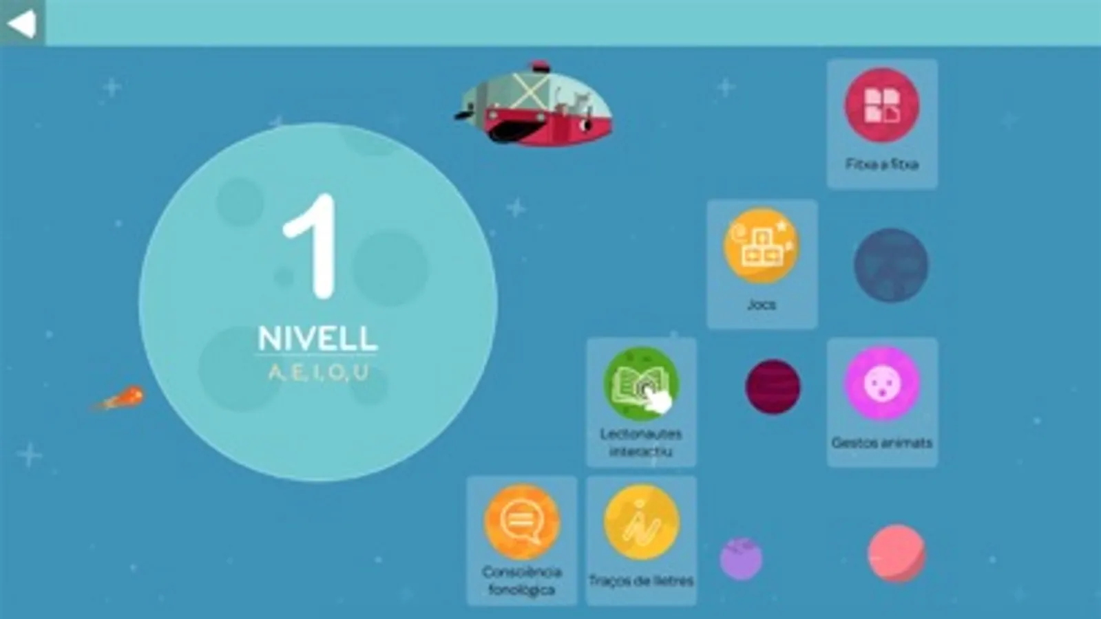 L’app Lecto+ es divideix en 6 nivells. Els seus objectius són motivar, reforçar i ampliar l’aprenentatge de la lectoescriptura d’una manera dinàmica. Inclou: