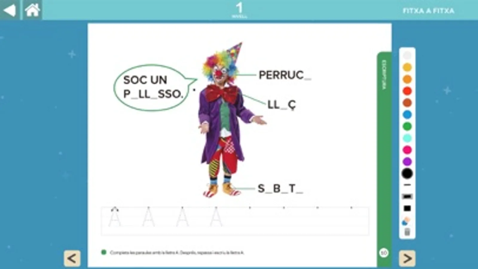 • Traços de lletres. Traços animats de totes les lletres per practicar-los i interioritzar-los. Disponible en els nivells de l’1 al 5.