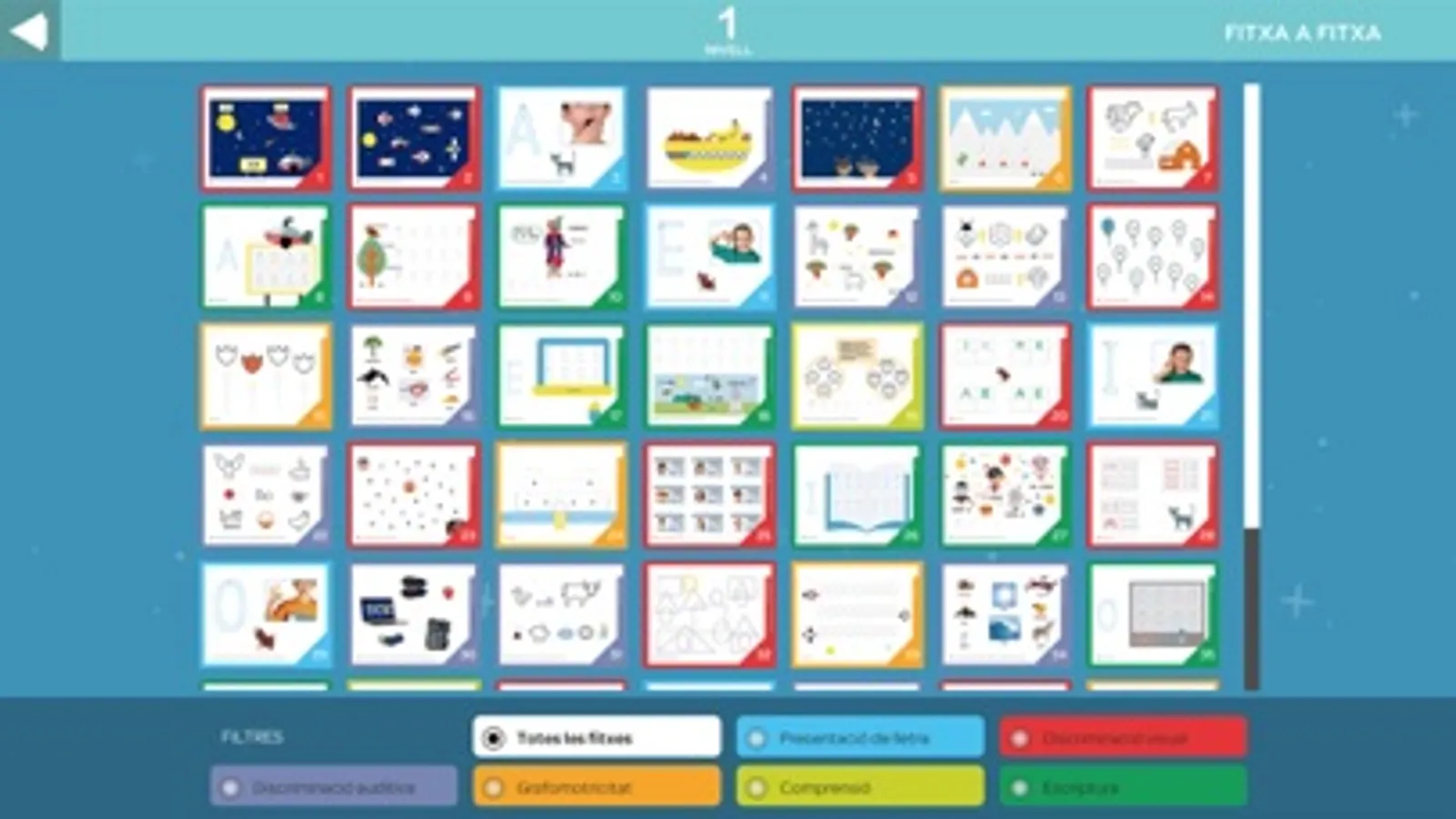 • Consciència fonològica. Recurs per treballar ritmes sil·làbics i sons. Disponible en els nivells 1, 2 i 3.