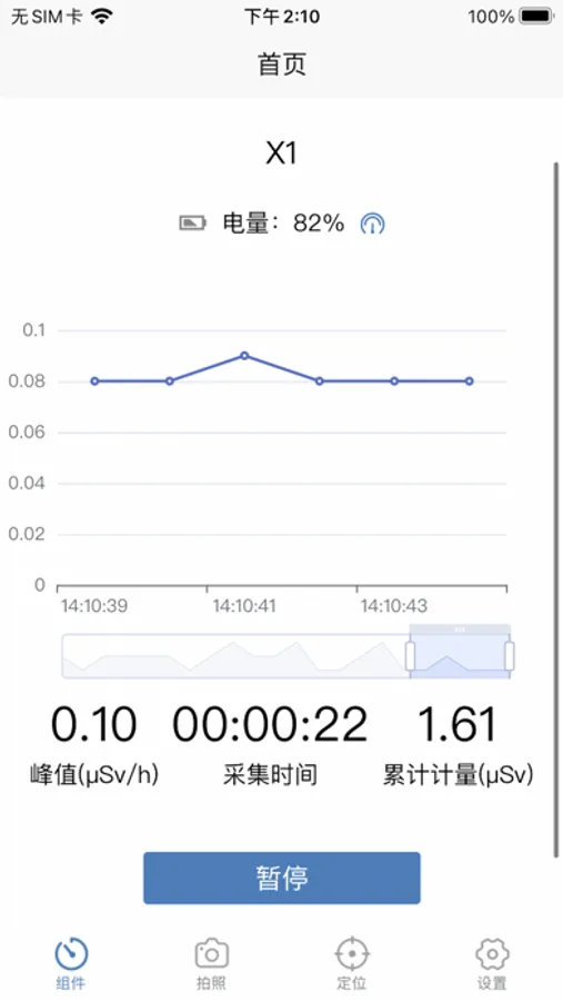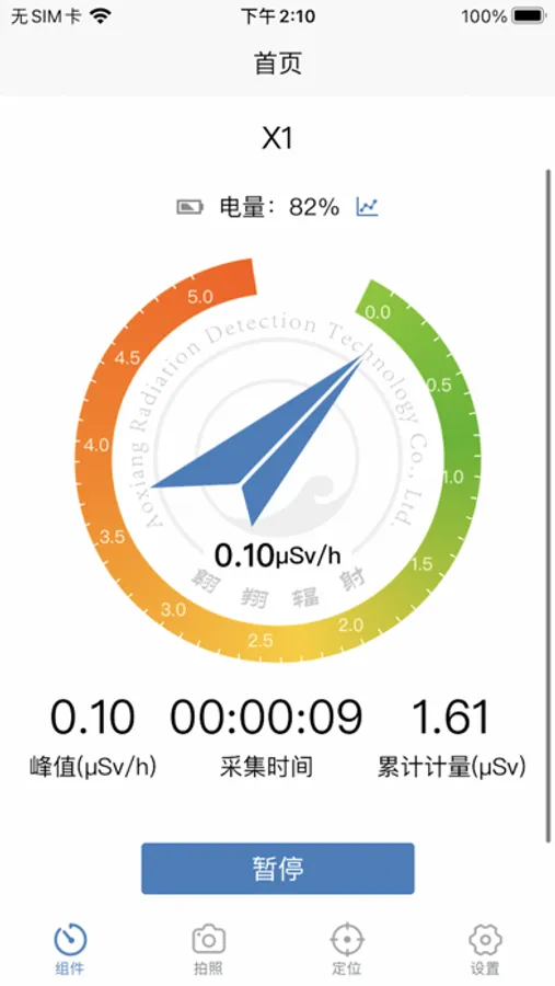 基于第三代半导体(CdZnTe,CZT)辐射探测器,并根据其高灵敏度在此基础上搭建的智能辐射监控系统。通过蓝牙连接手机后能够实时显示当前各个监测点的剂量率值、修改报警阈值、历史剂量值查看等功能