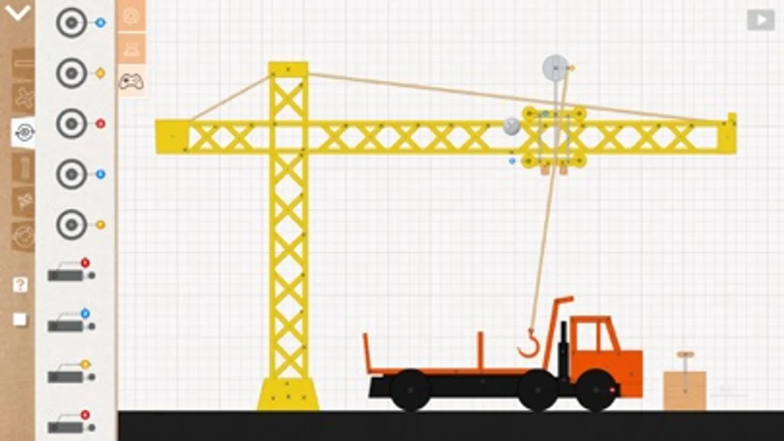 3. Provide a variety of parts, such as gears, springs, ropes, motors, axles, cams, basic shapes, water, sliders, hydraulic rods, magnets, triggers, controllers, etc;