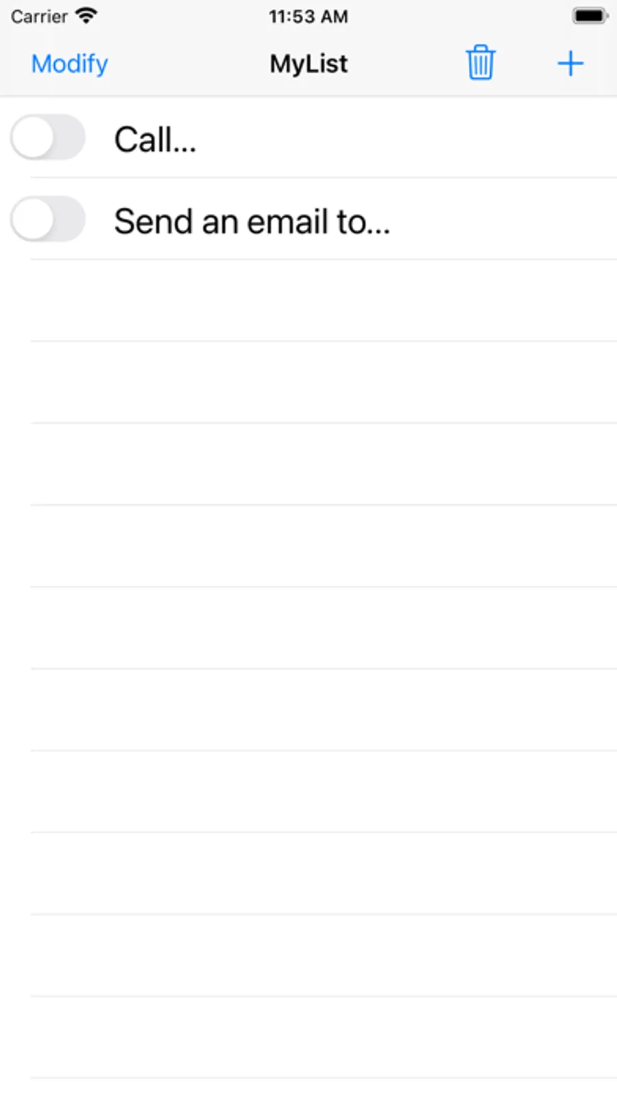 MyList is a simple, essential and user-friendly app for iPhone and iPad to manage a generic list: to-do list, things to pack, deadlines, etc. The elements of the list are inserted with the + button. The items to be checked are selected with a tap on the corresponding on / off button and automatically placed at the end of the list. At any time, you can change the items in the list, delete individual lines or delete the entire list. When the app is started, some example lines are displayed.