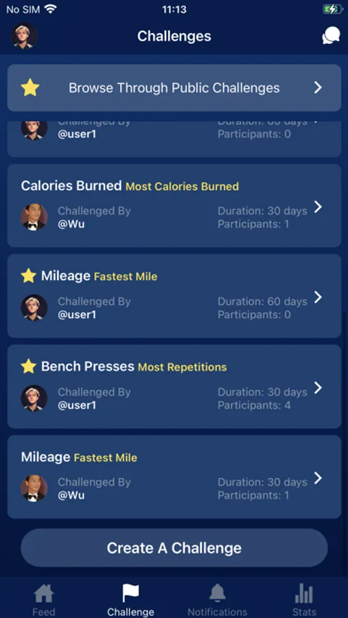 - Browse through public challenges to find other users that are in challenges that you are interested in!
