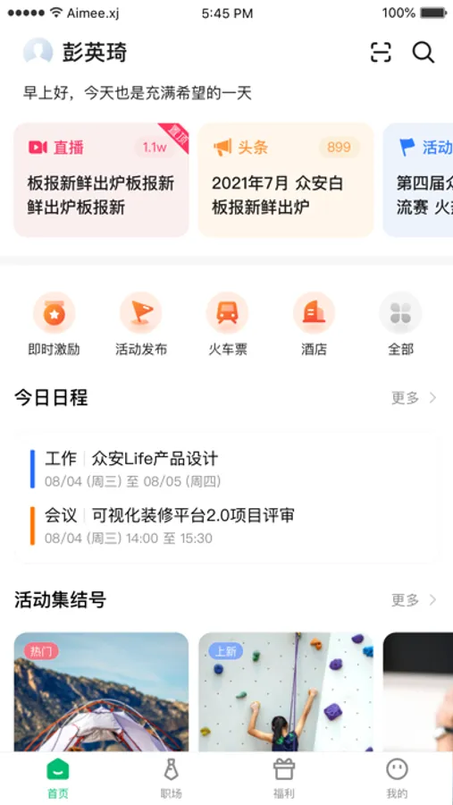 · 组织文化:点赞认可、周年祝福、圈子组局,让员工关系更融洽;高光时刻、企业直播,让组织大事能透传、有互动。