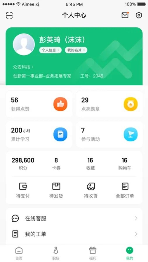 · 学习发展:上传课程、学习计划、在线考试、积分奖励,激活组织内的分享和成长。