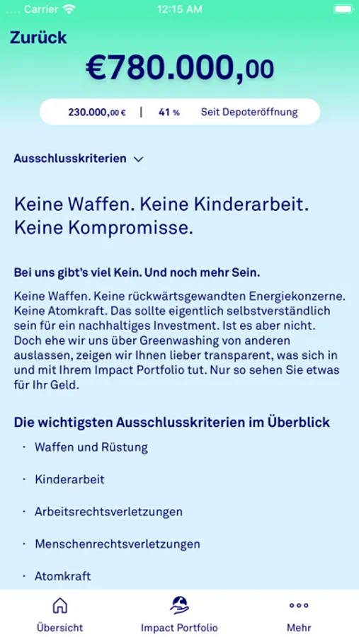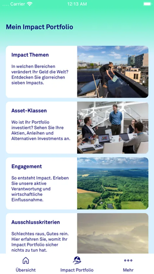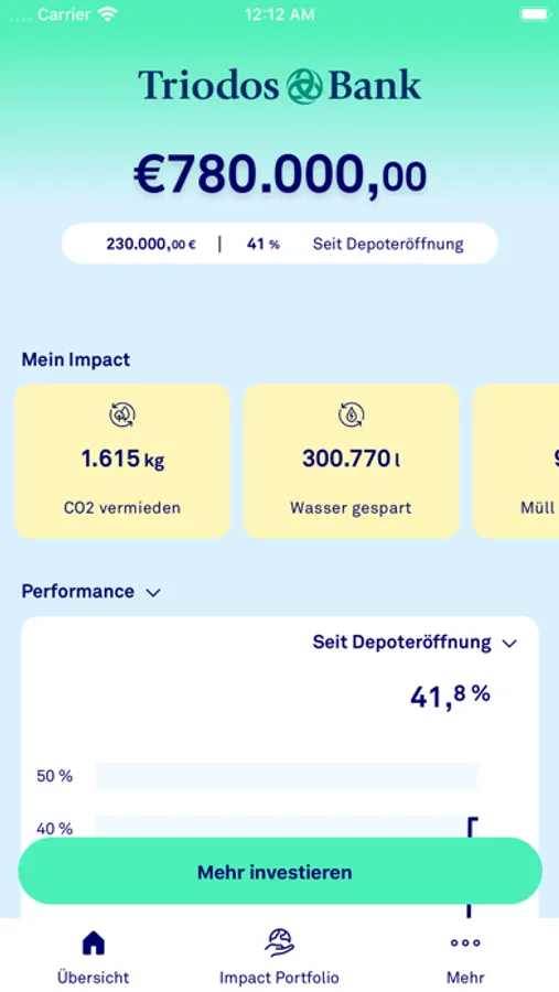 Die App ist Ihr Zugang zur nachhaltigen Vermögensverwaltung der Triodos Bank. Mit ihr lassen Sie einen guten Mix aus Aktien, Anleihen und Alternativen Investments wie z.B. Mikrofinanzfonds von Experten managen, die sich sowohl auf Nachhaltigkeit als auch aufs Wertpapiergeschäft verstehen.