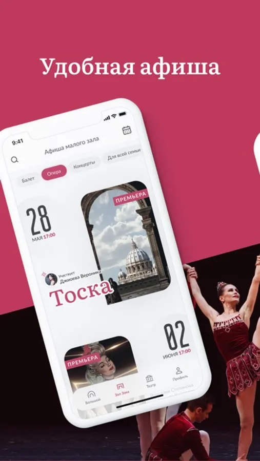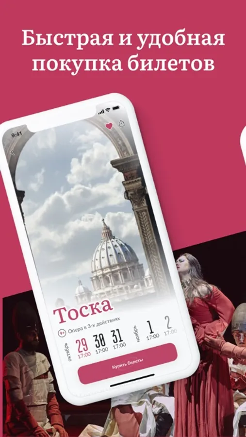 Мобильный сервис с понятной навигацией позволит вам просматривать афишу и легко совершать безопасные покупки билетов. Данные о купленных билетах отображаются в виде QR-кода, который используется для прохода в театр.