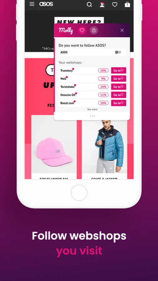 Click on the heart when you visit your favourite webshop. Molly will let you know when you can save with new coupon codes.Keep an eye on the NEW icon - you won't miss out on a bargain.