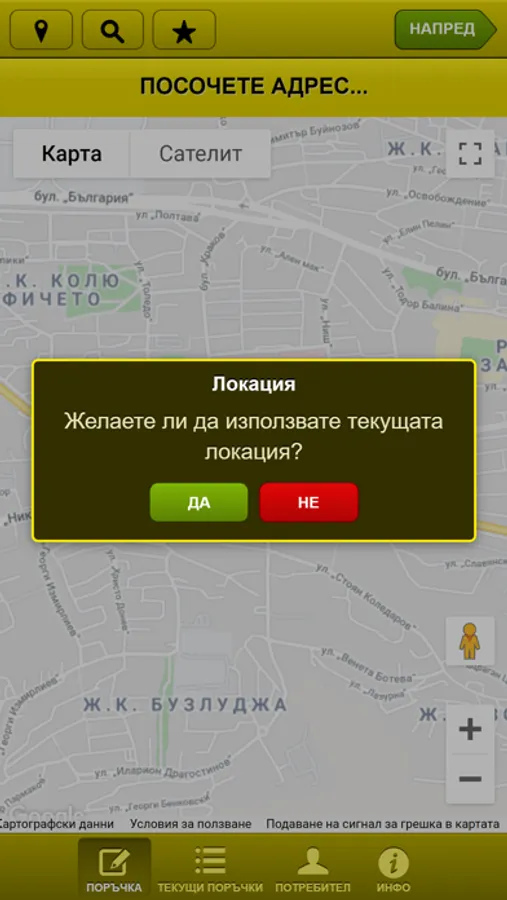 Устройството ще намери адреса на който се намирате и ще Ви позволи много бързо да изпратите вашата заявка.