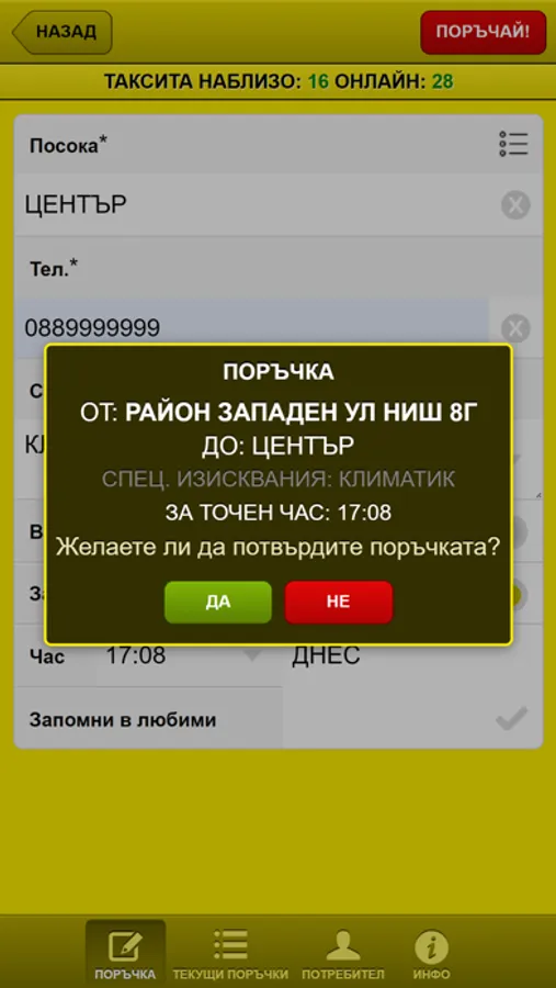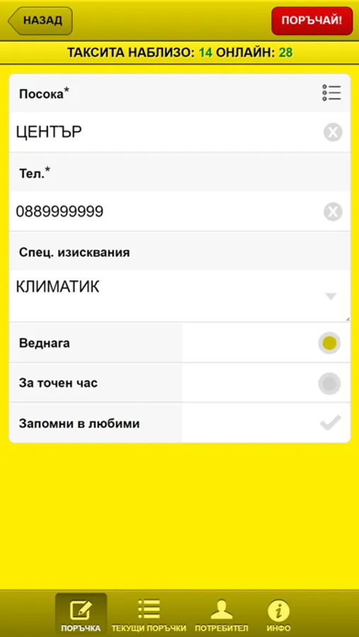 Приложение за поръчка на ЕВРО СИТИ ИНВЕСТ ТАКСИ във Велико Търново.