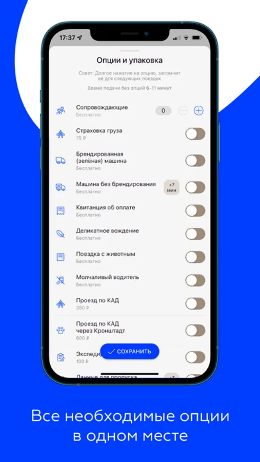The delivery address can be omitted if you allowed the app to determine the geolocation at the first start. The cost of the run, the time of delivery and travel time are calculated and displayed automatically.