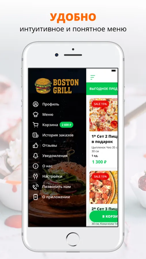 Скачивайте наше приложение, оформляйте заказ и наслаждайтесь любимой едой, где бы Вы ни были! Приятного аппетита!