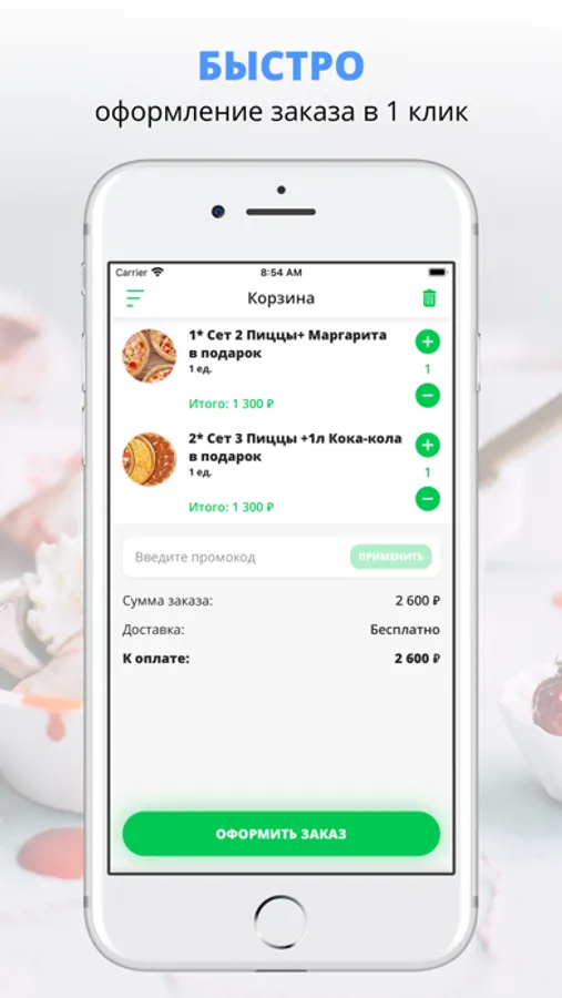 удобная корзина и быстрое оформление заказа,