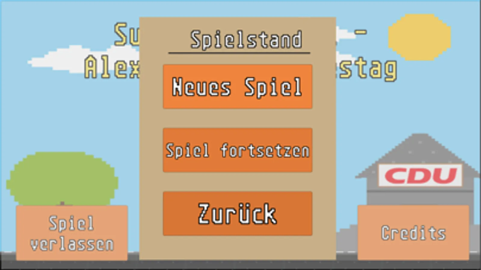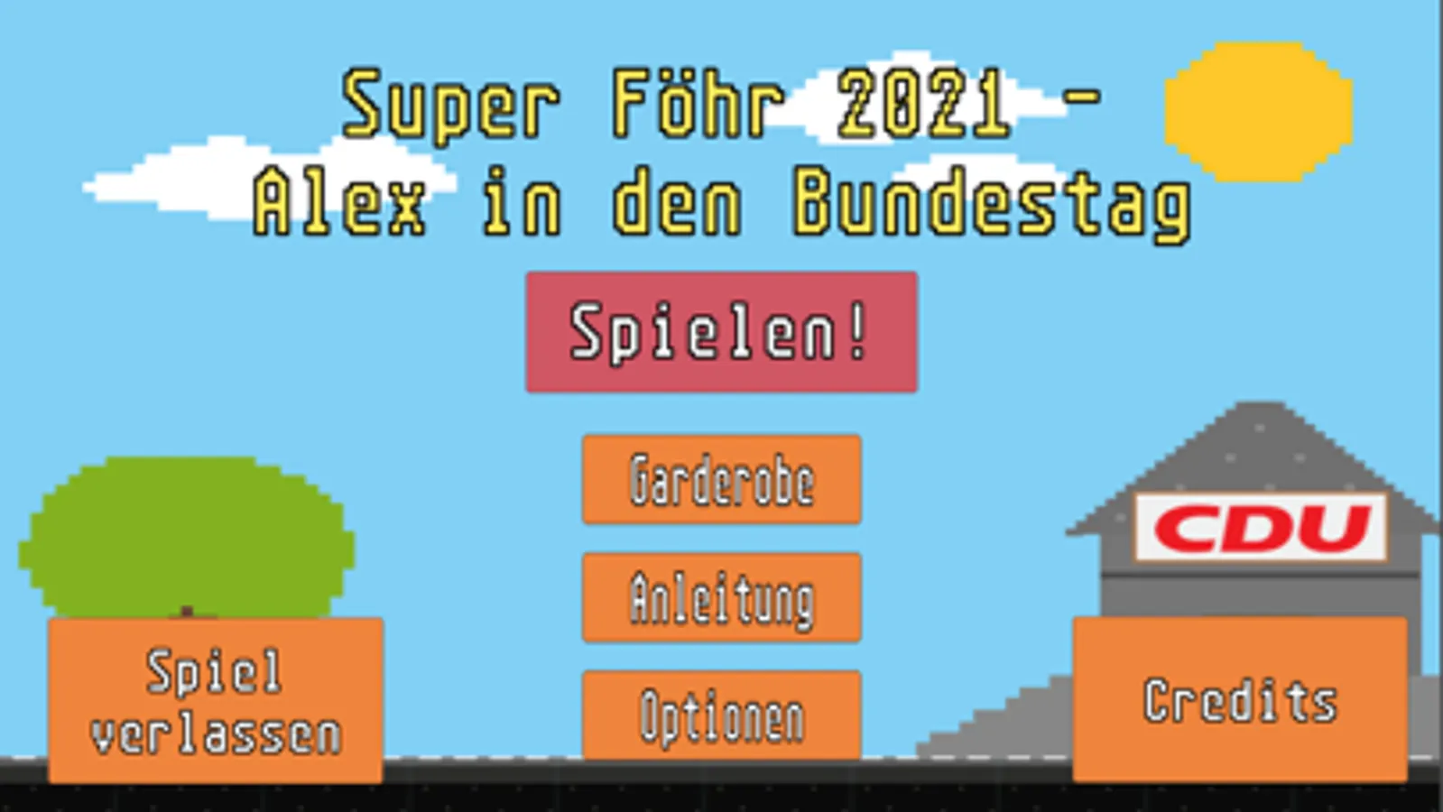 Die Bundestagwahl steht vor der Tür und der Wettstreit um die Sitze im Bundestag beginnt!Alex Föhr möchte einen Sitz erhalten. Hilf ihm dabei seinen Wahlkreis aus 12 Leveln erfolgreich zu durchlaufen. Zahlreiche Hindernisse und Gefahren stellen sich Dir und Alex dabei in den Weg, um Euch von diesem Vorhaben abzuhalten. Sei also vorsichtig!Während des Spiels können besondere Upgrades gefunden und gesammelt werden. Diese verleihen Alex besondere Fähigkeiten.Besuche uns auf meiner Seite: