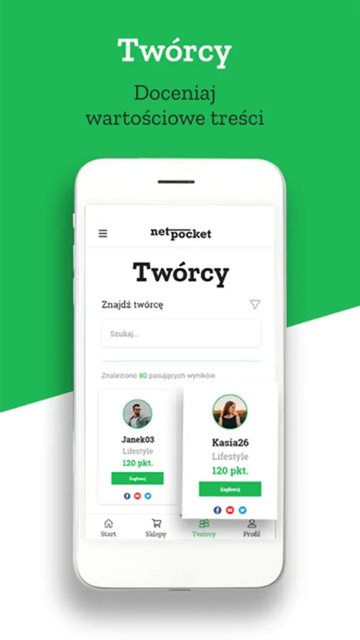 Dzięki aplikacji Net-Pocket cashback jest w zasięgu zaledwie jednego kliknięcia! Dołącz do użytkowników aplikacji mobilnej Net-Pocket i ciesz się atrakcyjnymi zwrotami i zniżkami z ponad 1200 partnerskich sklepów! Otrzymaj zwrot nawet do 50%! Co więcej, otrzymany cashback możesz wypłacić lub przeznaczyć na głosowanie na ulubionych internetowych Twórców lub na pomoc organizacjom charytatywnym.