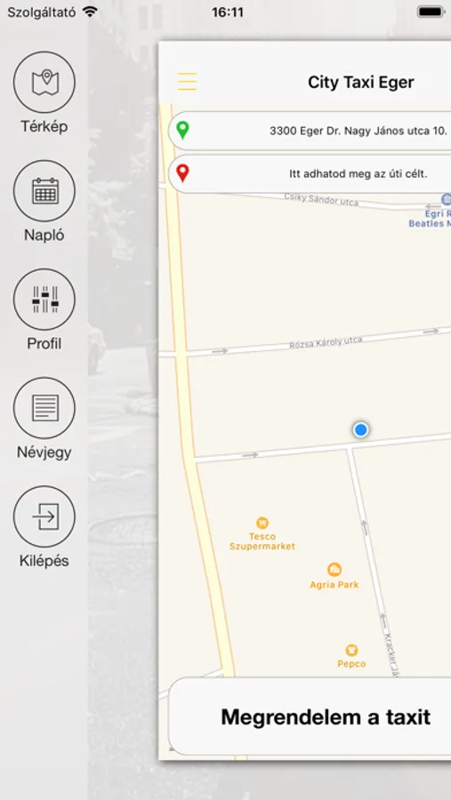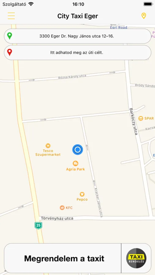 Use the most up to date taxi order application available in Hungary. After logging in you can order a taxi to your current position with just one press of a button. If you wish to order to another location you can locate it on the map with ease. Pre order submission is also supported.