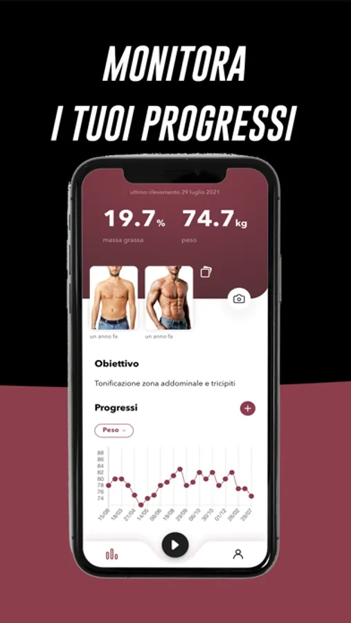 Avrai sempre sotto controllo la tua attività fisica: potrai visualizzare quali esercizi sono previsti nel tuo piano di allenamento, i tuoi progressi e come cambia il tuo fisico nel corso del tempo.