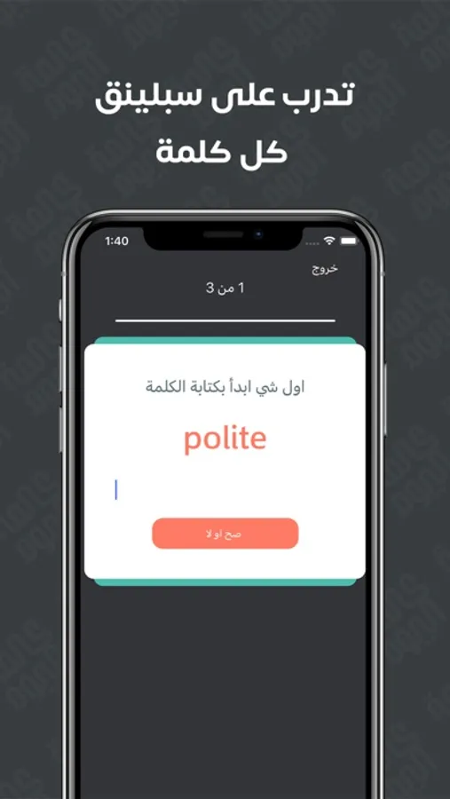 كثير تمر علينا كلمات لاول مرة , وكثير تمر علينا كلمات كل يوم نسمعها لكن ما نعرف نكتبها ! هذا التطبيق بيعلمك كل يوم كلمة جديدة تضيفها لمحصولك اللغوي , وكمان تتدرب عليها بطريقة بسيطة وخفيفة . كل يوم ادخل وتعلم كلمة ممكن بعدين ما تكون جديدة عليك.