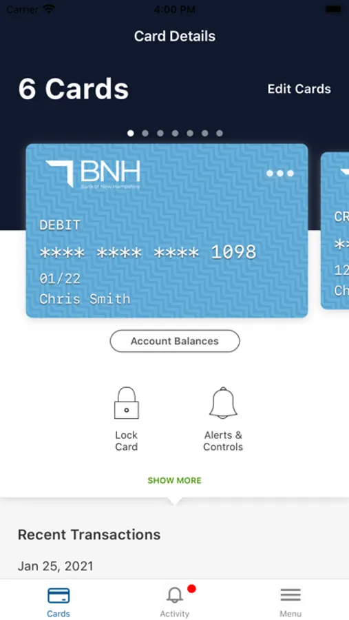 Protect your debit and credit cards by sending transaction alerts and giving you the ability to define when, where and how your cards are used. Simply download the app to your mobile device, then customize your alert preferences and usage settings to monitor and manage your cards.