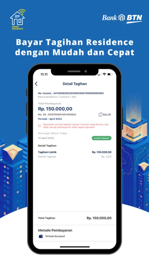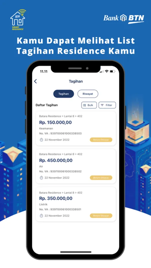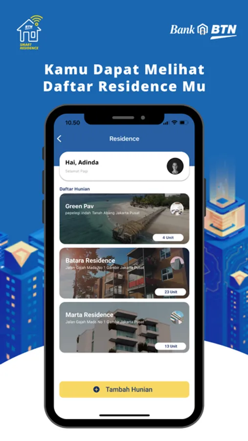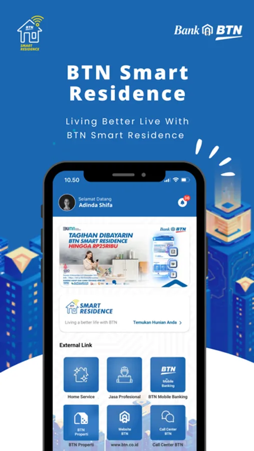 BTN Smart Residence – Platform milik Bank BTN sebagai penghubung antara penghuni dan pengelola residensial dengan beberapa fitur unggulan di dalamnya untuk pembayaran tagihan iuran-iuran, pertukaran informasi, sampai dengan keluhan pelanggan dan komunitas.