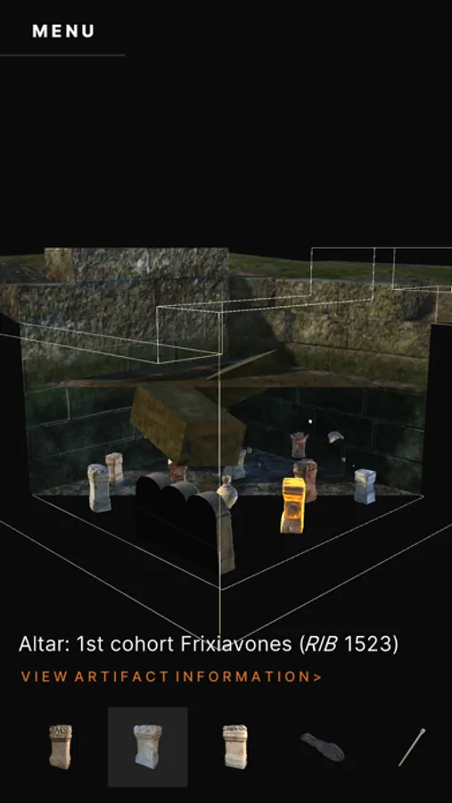 The digital artefact mode allows interaction and inspection of a selection of key pieces from the collection. This enables a closer study, in some cases a full 360° view, of these artefacts which are usually in cabinets or even in storage and not normally on display.