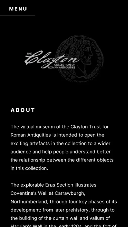 The virtual museum of the Clayton Trust for Roman Antiquities is intended to open the exciting artefacts in the collection to a wider audience and help people understand better the relationship between the different objects in this collection.