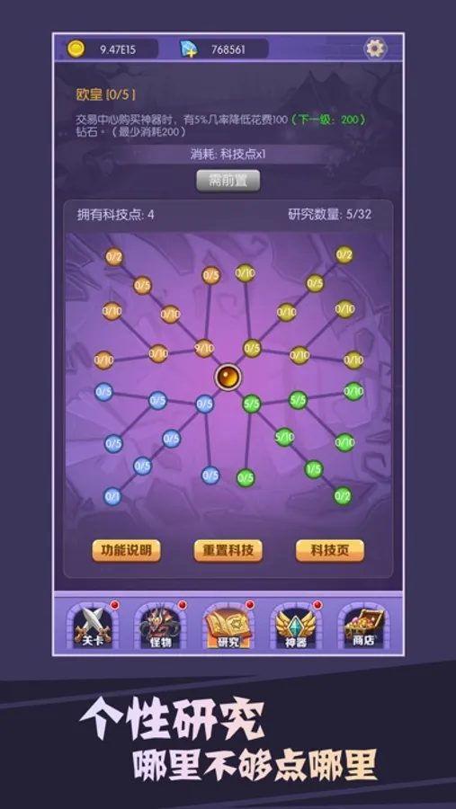 3.科技系统:科技有4个分支,每个分支都有不同的作用,在游戏前期,利用好每个科技,才是重中之重!