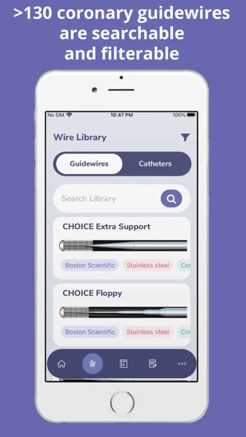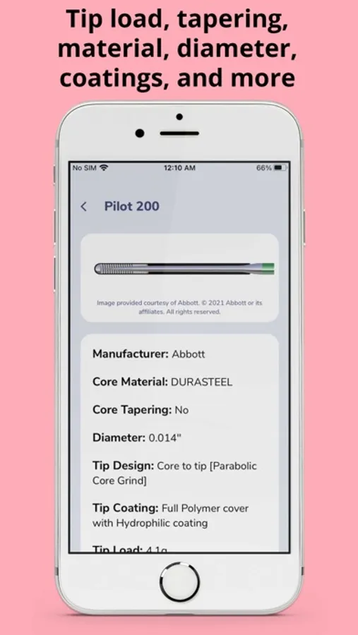 GuidewireAID has a number of features valuable to new and veteran interventionalists, nurses, technicians, and industry personnel. An in-depth introduction to coronary guidewires brings users up to speed with terminology such as tip load and coatings. A large selection of case reviews shows a variety of complex cases, and selection recommendations and an expansive wire library can help find alternative wires based on similar properties.