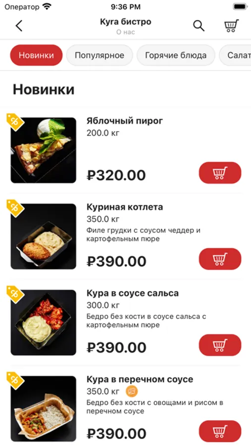 - узнавайте самую свежую информацию о новинках меню и акция прямо в приложении.