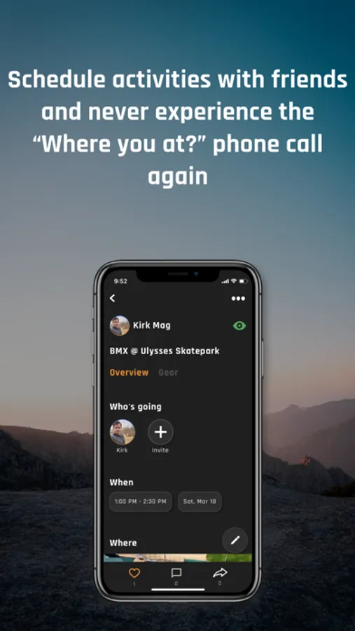 Schedule activities - Simplify the planning process of your next outdoor experience by scheduling it on Kaptain. Invite friends, create packing lists, and know exactly where to meet up. The best part is that you want to plan out activities you want to do, you can label them as "ideas", so you can save them for when you are ready to get outside.