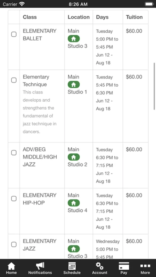 The Studio Five Dance Company app allows you to manage your account with ease, register for classes, parties, and special events. You'll also receive important notifications about class changes, closings, registration openings, special announcements, and upcoming events.