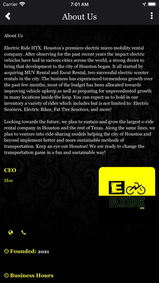 Electric Ride HTX, Houston’s premiere electric micro mobility rental company. After observing for the past recent years the impact electric vehicles have had in various cities across the world, a strong desire to bring that development to the city of Houston began. It all started by acquiring MUV Rental and Escut Rental, two successful electric scooter rentals in the city. The business has experienced tremendous growth over the past few months, most of the budget has been allocated towards improving vehicle upkeep as well as preparing for unprecedented growth in many locations inside the loop. You can expect us to hold in our inventory a variety of rides which includes but is not limited to: Electric Scooters, Electric Bikes, Fat Tire Scooters, and more!