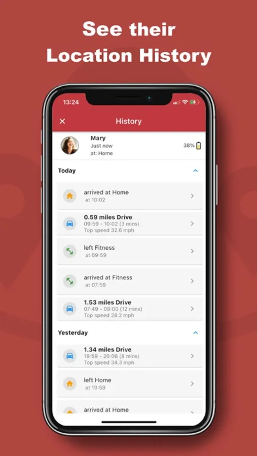 - Receive real-time alerts when a family member arrives at or leaves a place.