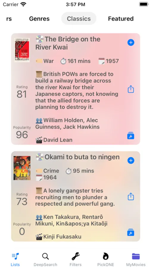 - Find movies from curated lists