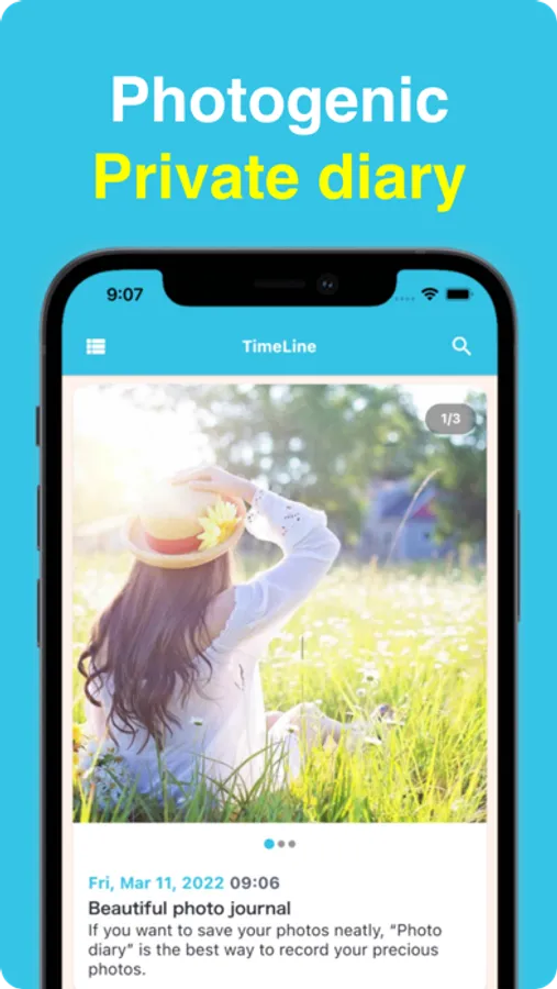 Posts are arranged in chronological order like a timeline. You can write an unlimited number of times a day, such as events from waking up in the morning to before going to bed, lunch break, traveling by train, etc.
