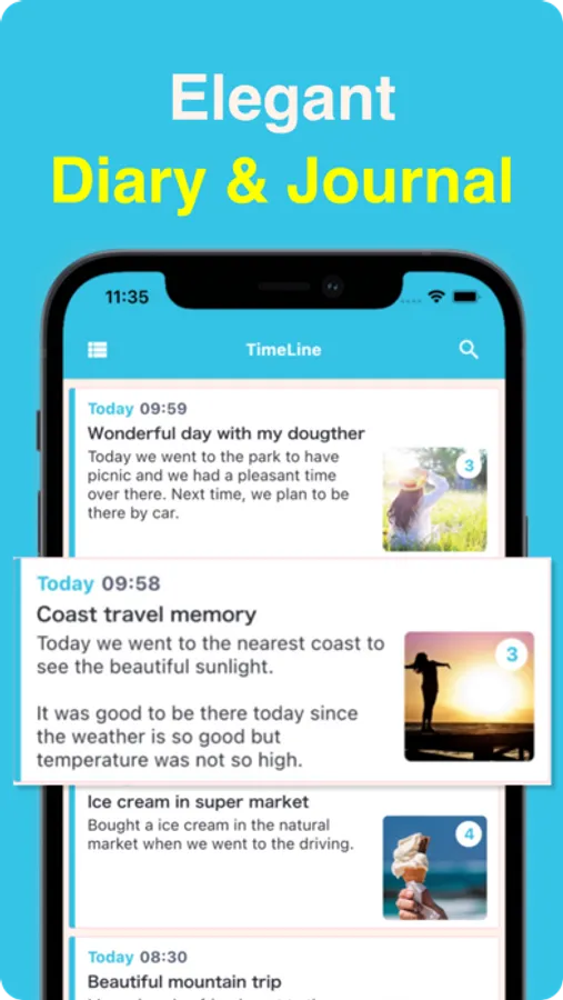 Photo diary is a free offline diary and personal journal app with lock. You can use it to record daily personal journal with photos, thoughts, journey, emotions, and private daily moments in a chronological timeline.