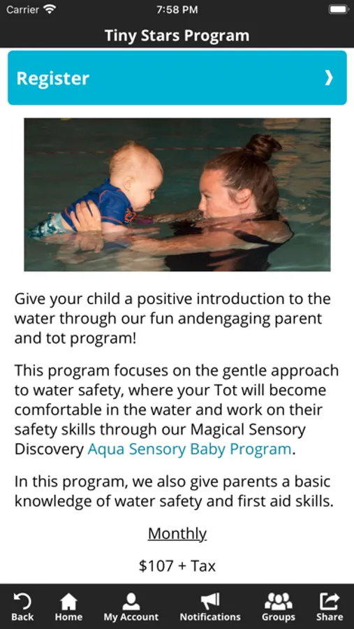 The Shining Stars Swim School app allows you to manage your account with ease, see your child's progress and more!