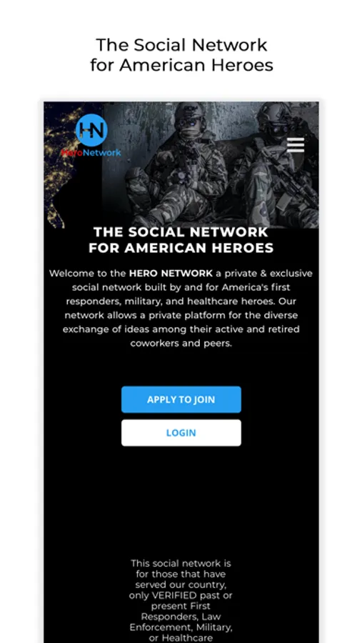 The HeroNetwork allows the members to speak freely to their peers in a way that the general public would not understand. Speak freely and professionally without fear of censorship! We are not a political platform. We are an American network that can respectfully agree to disagree.
