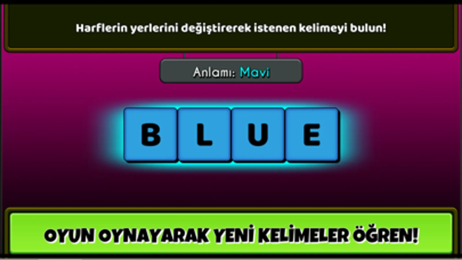 Oyun oynayarak ve yarışarak yepyeni ingilizce kelimeler öğren ve ezberle, öğrendiğin kelimeleri pekiştir, diğer oyuncular ile kıyasıya rekabet et ve kelime bilgini test et.