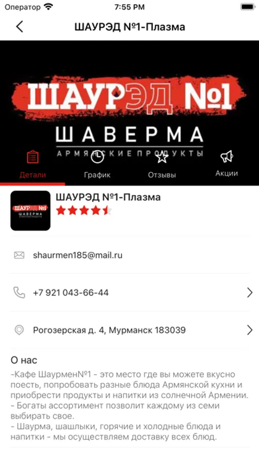Кафе Шаурэд №1 - Это место где вы сможете попробовать вкуснейшие блюда Армянской кухни шашлыков ,шауермы и люля.