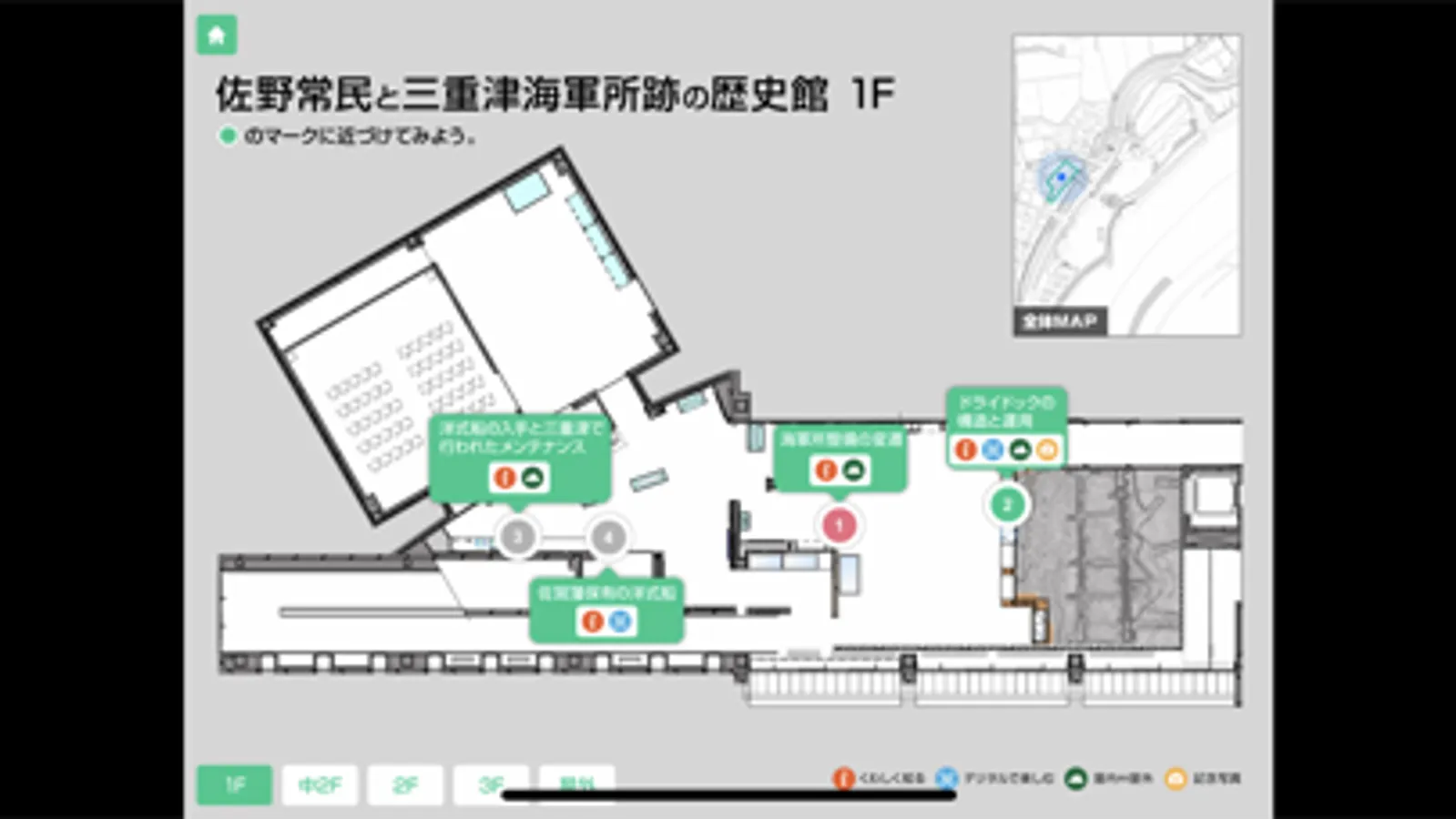 このアプリは「佐野常民と三重津海軍所跡の歴史館」の展示を分かりやすく、楽しみながら見学して頂くための手助けをするものです。また、このアプリを館内で使用すると、より一層リアルに描かれた再現CGや電流丸の3Dデータなどによって、「当時の三重津海軍所」を体感できるようになっています。