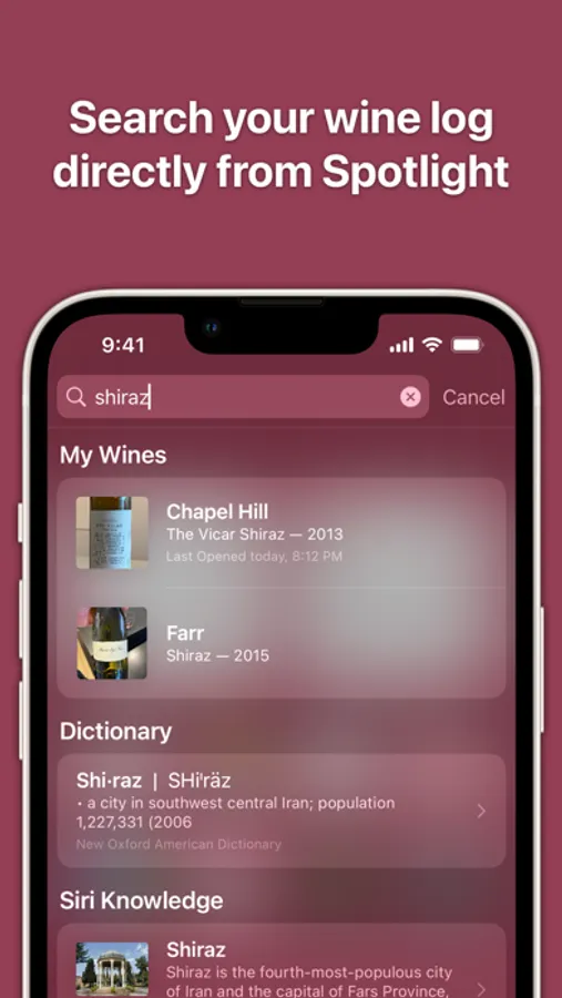 You can also quickly search your wine log right from Spotlight, without having to open the app first.