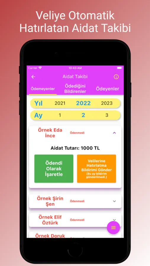 * Otomatik Uyarı Sistemli Aidat Takibi