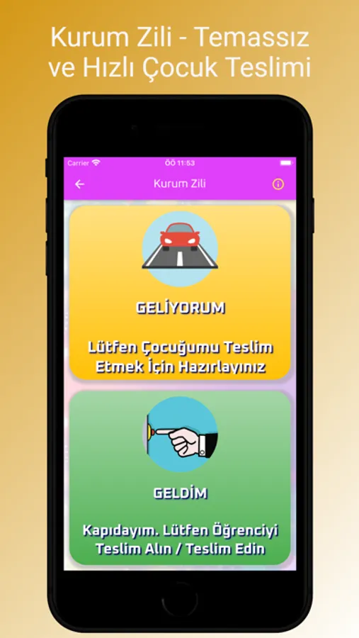 * Kurum Zili ile Temassız ve Hızlı Çocuk Teslimi