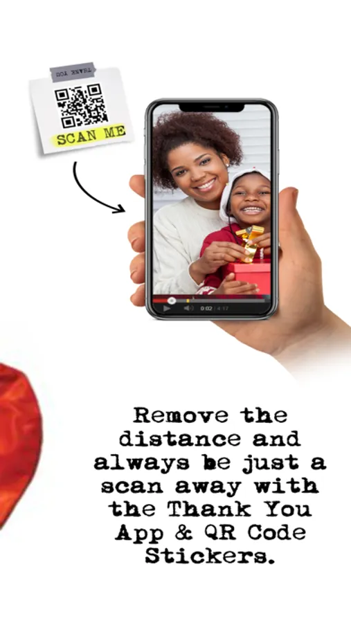 Send a personalized virtual message near, far or wherever you are with Thank You. Create your own photo, video and even pdf message, then easily share them using Thank You QR code stickers. Here’s how it works: