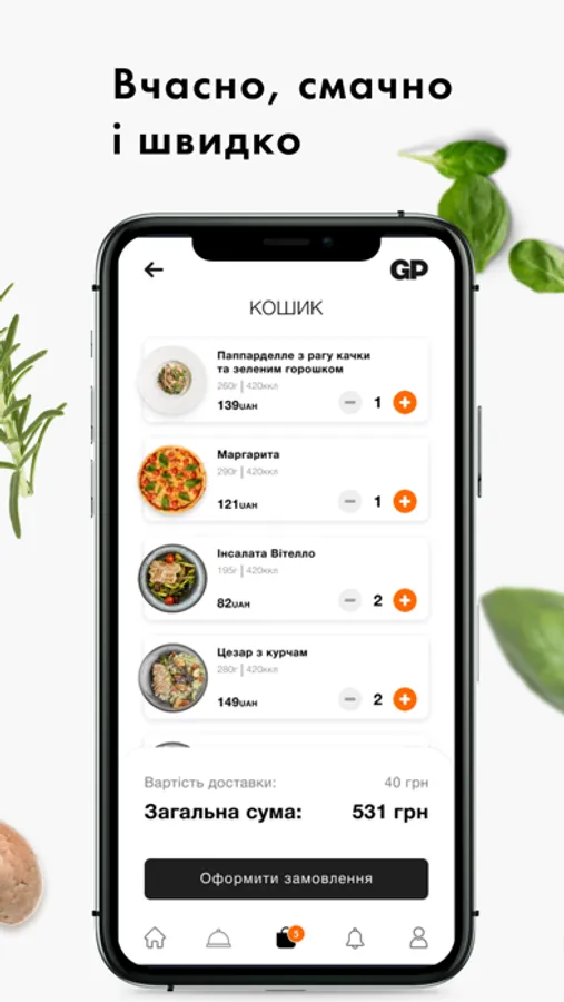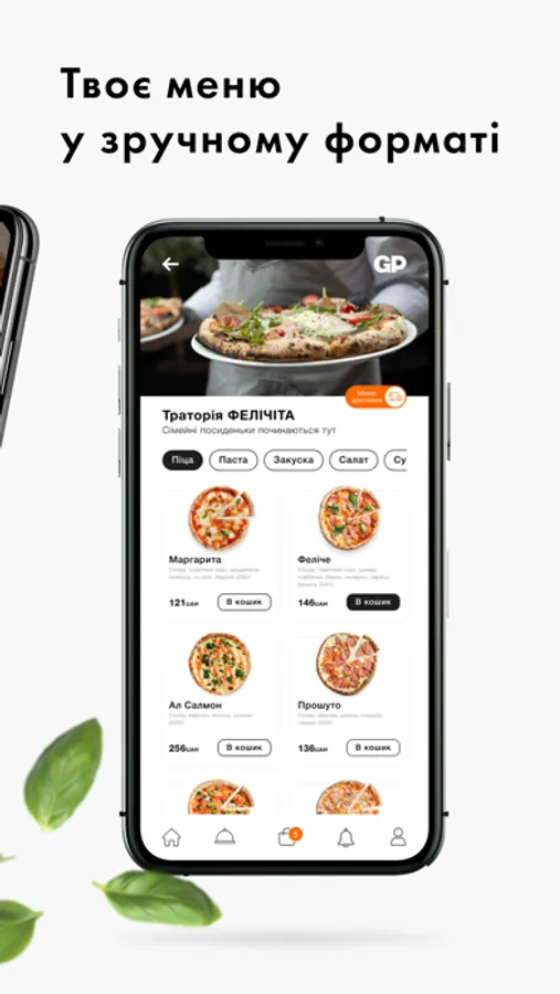 Переглядай доступні страви у меню, замовляй блискавичну доставку і отримуй сповіщення про новенькі страви.