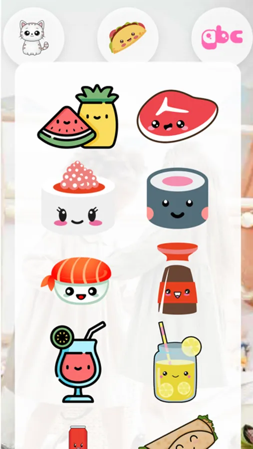 - Select other Kawaii funny stickers that you want to add to the Kawaii photo.